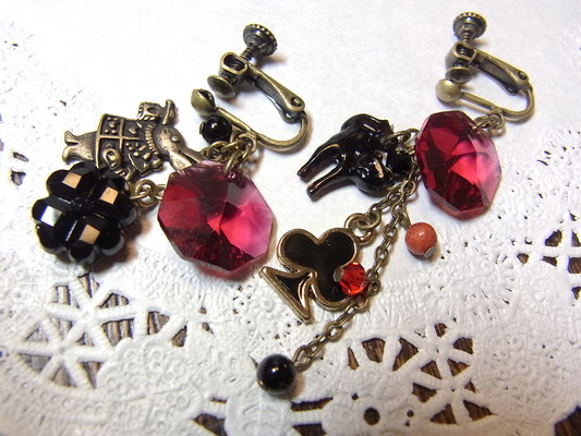 (自分用なのでイヤリング)ワインレッドのスワロフスキーが