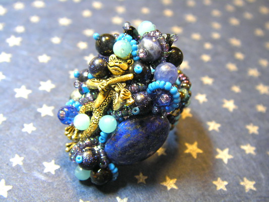 前回のリングに続き 星空の物語です 小さな天使が 夜空にちらばるお星様を 集めています 今回は珍しく エポ樹脂がついたチャームです 天使の可愛らしさが出て エポ付きも良いなぁと思いました