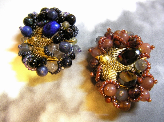 石やビーズで作りました。